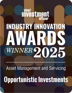 Desk plaque for The 2025 CHIEF INVESTMENT OFFICER Asset Management & Servicing: Opportunistic Investments award